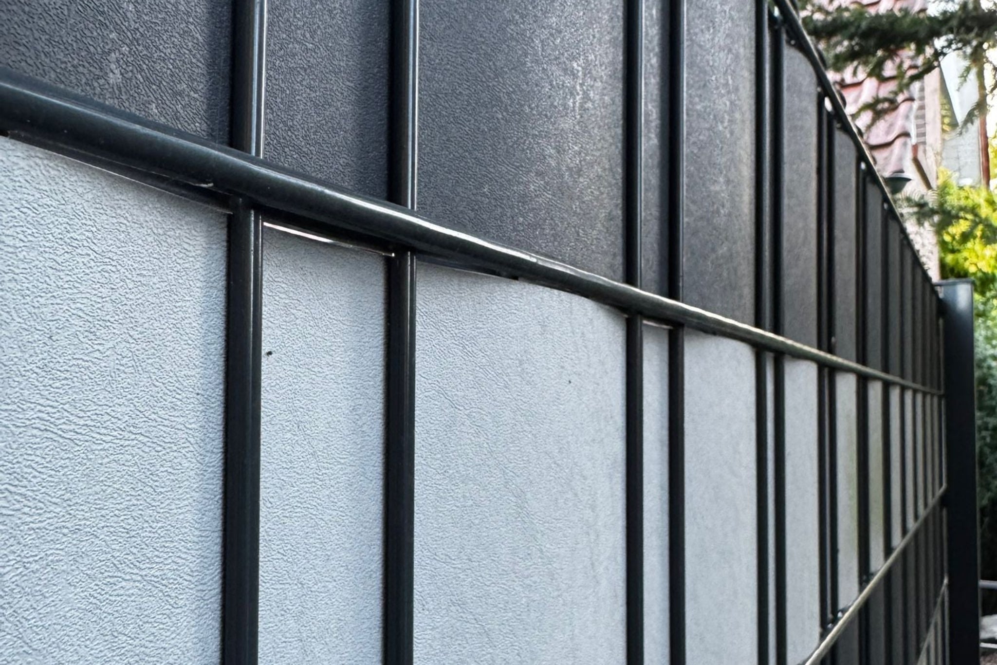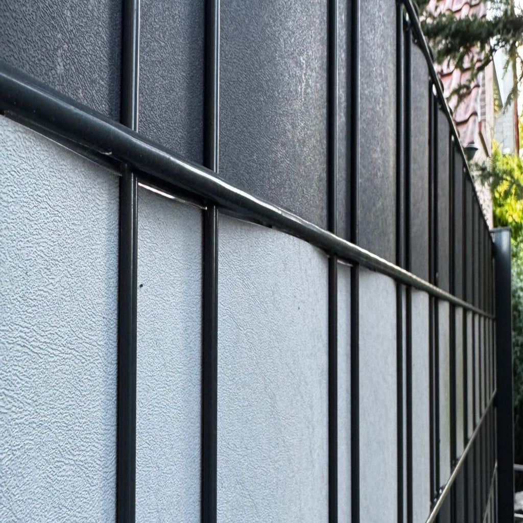 PP-Sichtschutz verleiht Doppelstabmatten eine moderne Optik, ist witterungsbeständig, langlebig und zu 100 % blickdicht – ideal für Garten, Terrasse und Gewerbeflächen.